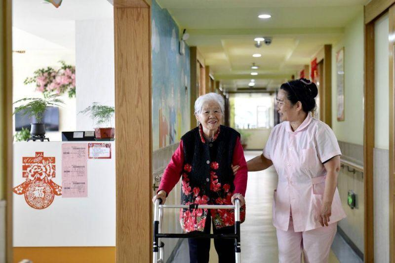 2024年5月25日,在山東省日照市東港區(qū)石臼街道日照幸福護理院,工作人員在陪護老人。新華社記者 郭緒雷 攝